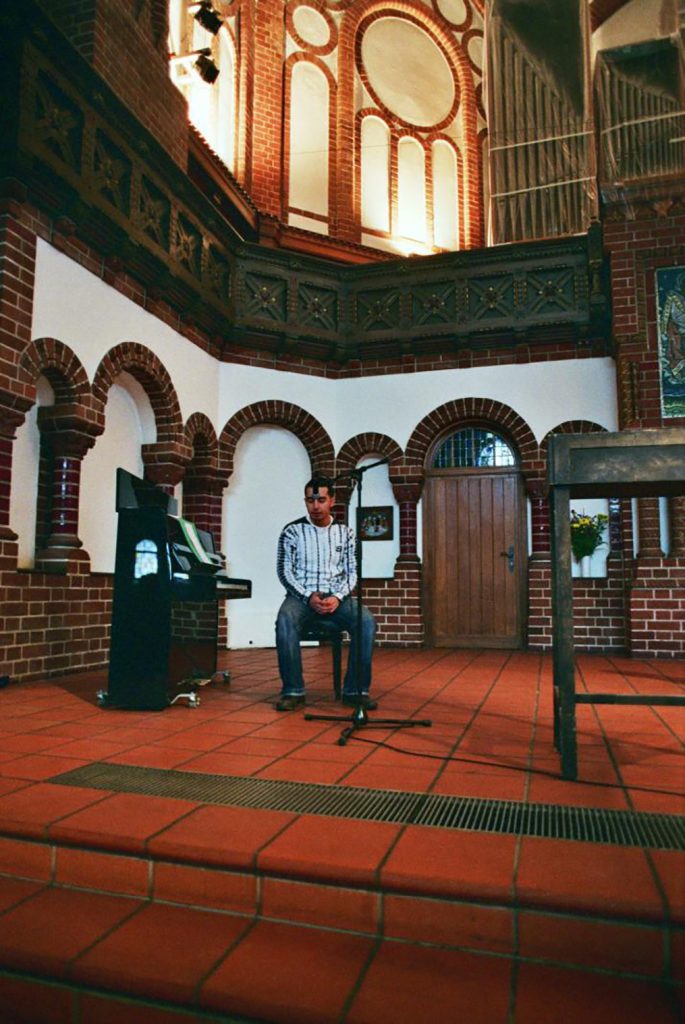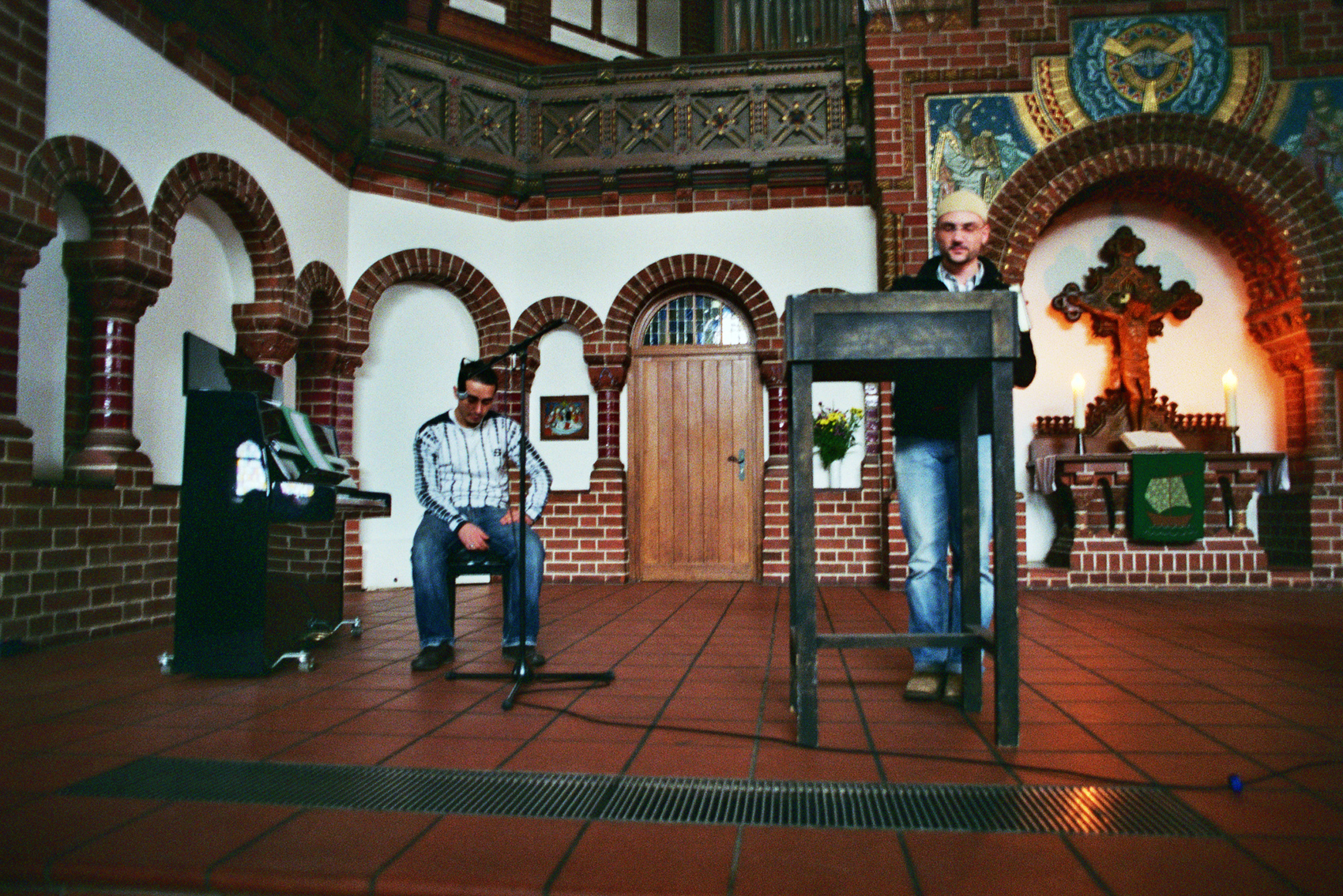 Neukölln is a multicultural and especially Turkish district of Berlin. The performance took place as a part of a Lutheran service in the Finnish Lutheran church called Passion Kirche, on Valentines Day in 2010. Chalid Durmosch from the nearby Mosque Şehitlik-Moschee was invited to reflect on the subject of love with Lutheran priest Kai Henttonen. The resulting intervention was a singing performance by a singer trained in Quran recitation and speeches on the theme of love by both Chalid and Kai. The service ended with all the participants of the service making a tour around the church with a candle in their hands.